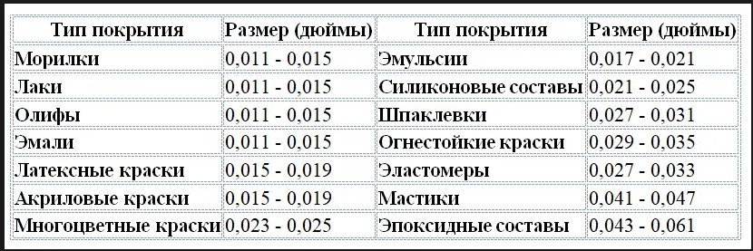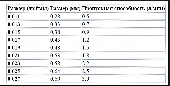Перед выбором сопла важно учитывать его пропускную способность, которая влияет на расход краски и качество нанесения. Рассмотрим таблицу для выбора подходящей форсунки: