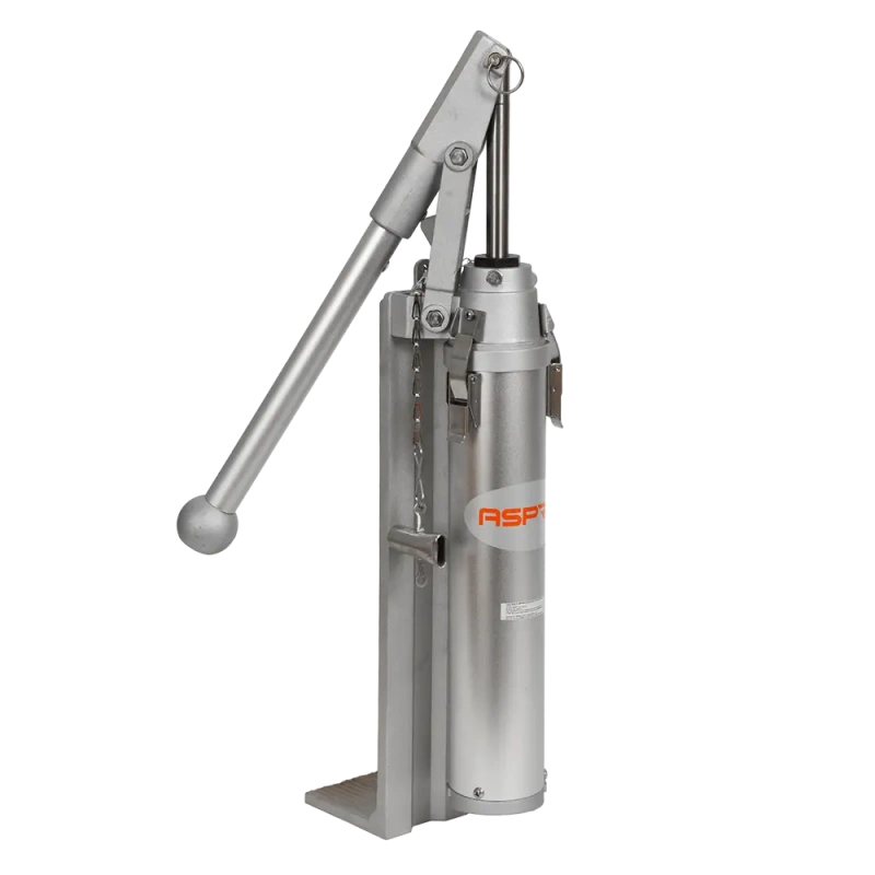 Насос работает вручную, а большинство деталей сделаны из алюминия и стали - что обеспечивает надежность и долговечность механизма.