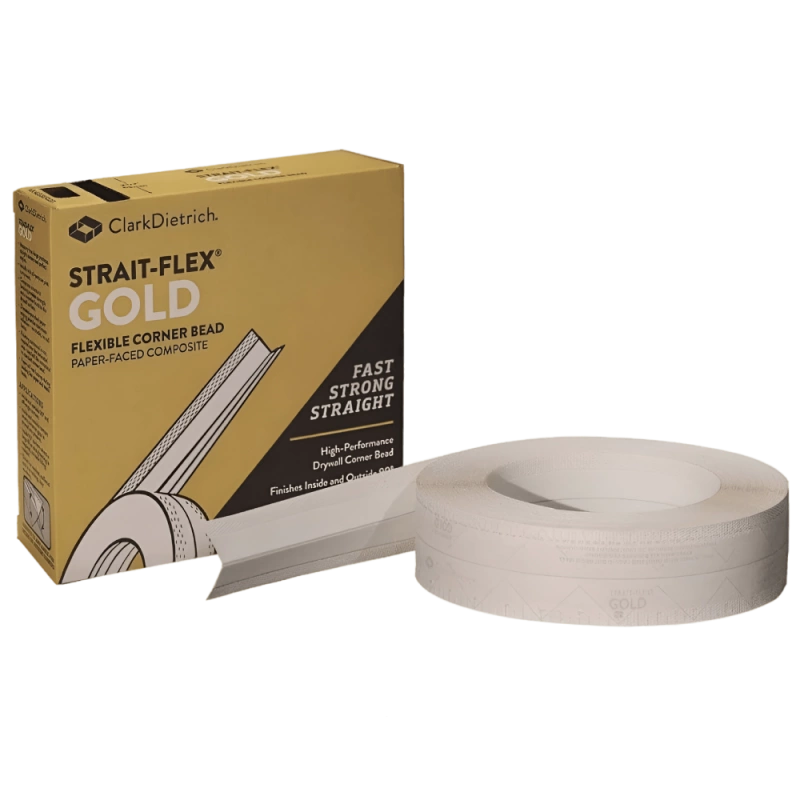 Strait-Flex Gold - это композитная угловая лента с бумажным покрытием, которая наносится шпаклевкой и может подстраиваться под любой угол, создавая идеальные внутренние и внешние углы 90° и углы под наклоном.