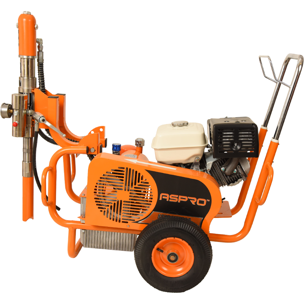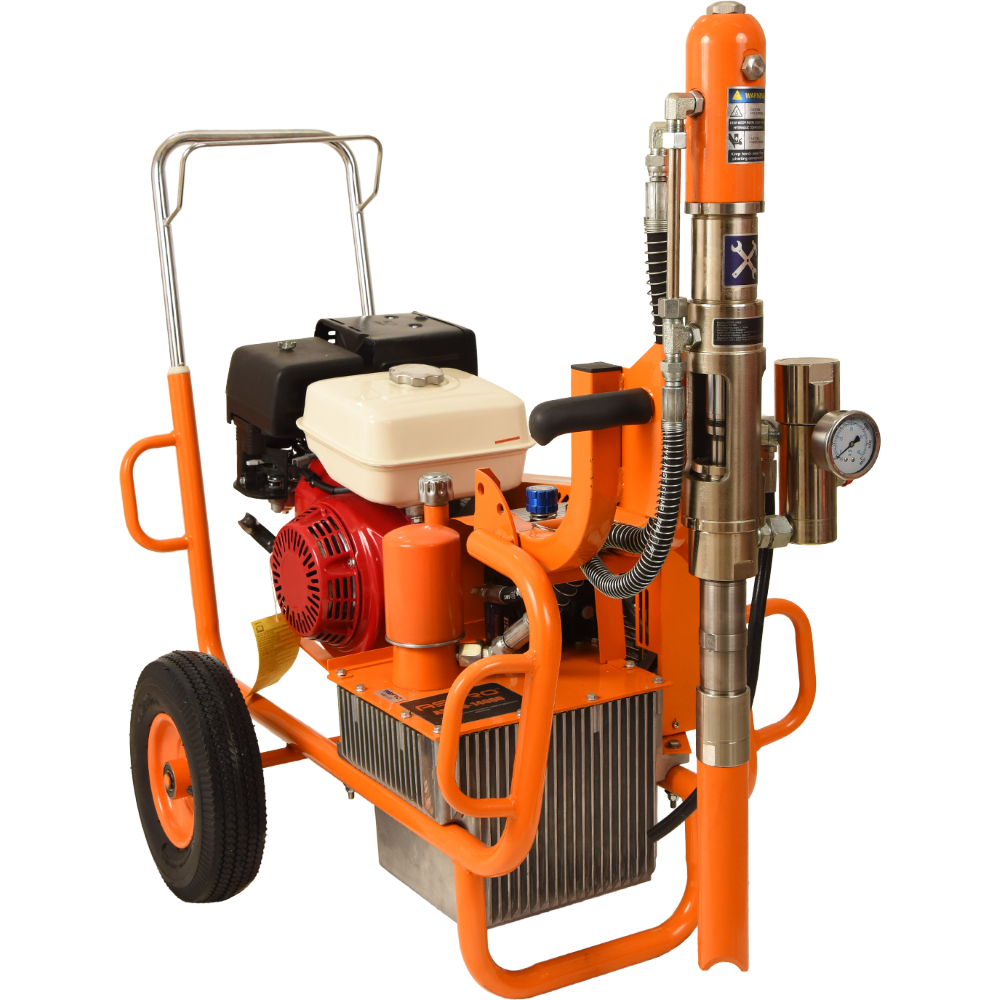Мощный гидропоршневой окрасочный агрегат с автономным бензиновым двигателем, предназначенный для профессионального использования в условиях отсутствия возможности подключения к электросети. Идеально подходит для окраски крупногабаритных объектов, таких как железобетонные конструкции, металлические конструкции и фасады зданий. Благодаря гидроприводу обеспечивает равномерное и экономичное нанесение краски, а мощный двигатель позволяет использовать шланги высокого давления большой длины.