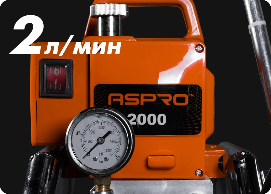 ASPRO-2000 не занимает много места и весит всего 14,2 кг, что облегчает транспортировку и хранение. В то же время мощности аппарата хватает для больших объемов не высокотехнологичных работ по окраске внутри и снаружи помещений.