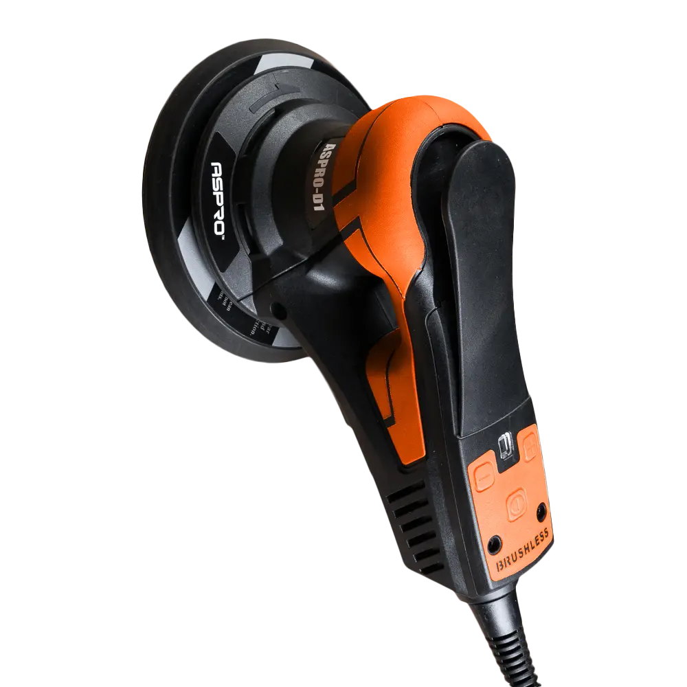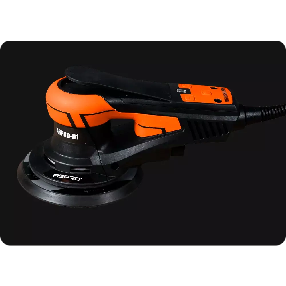 Мощность двигателя составляет 400 Вт. 7 передач для регулировки скорости в диапазоне от 4000 до 10000 оборотов в минуту. Диаметр шлифовального диска 150 мм.