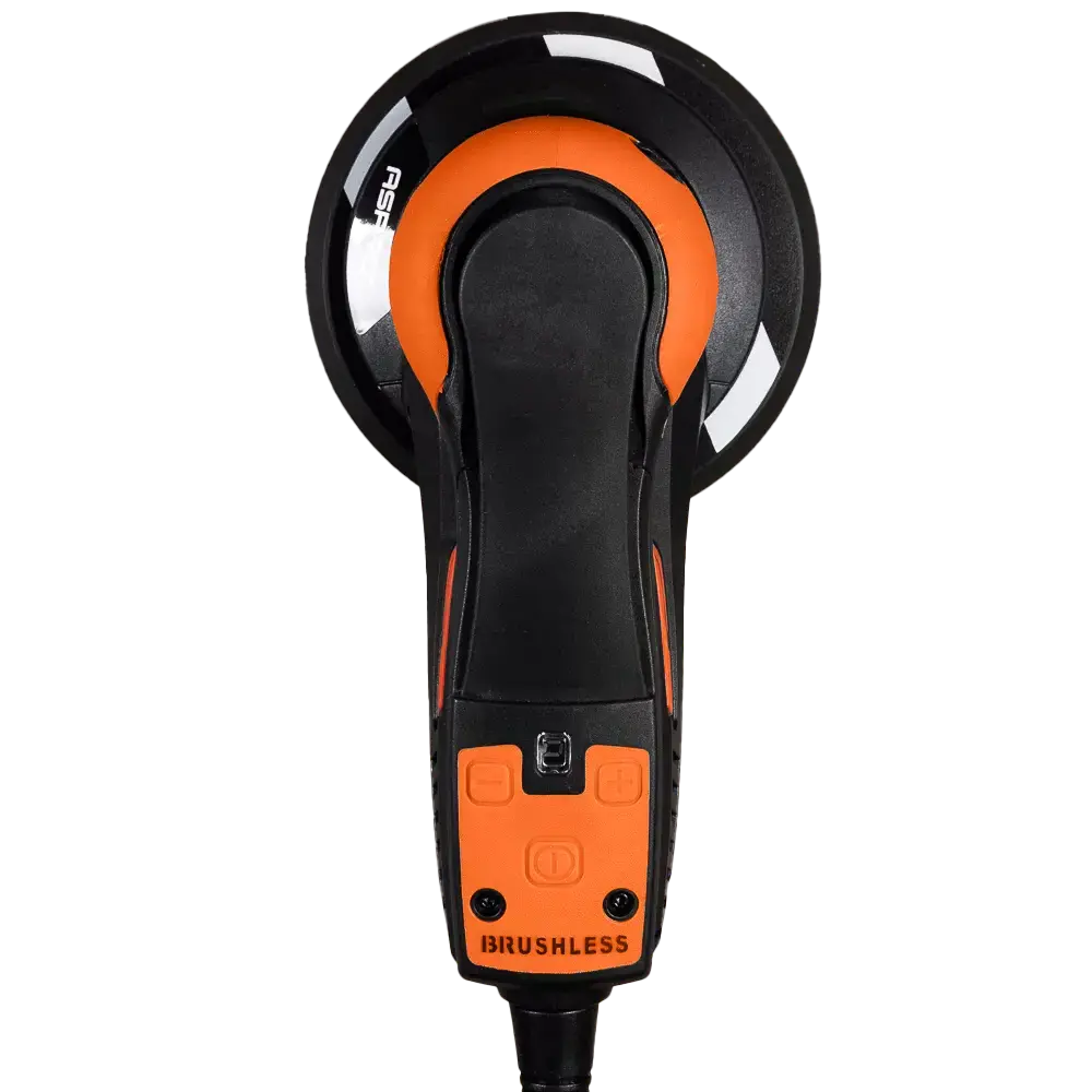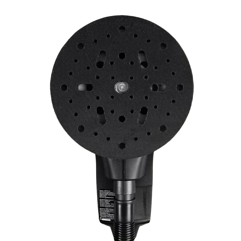 Мощность двигателя составляет 400 Вт. 7 передач для регулировки скорости в диапазоне от 4000 до 10000 оборотов в минуту. Диаметр шлифовального диска 150 мм.