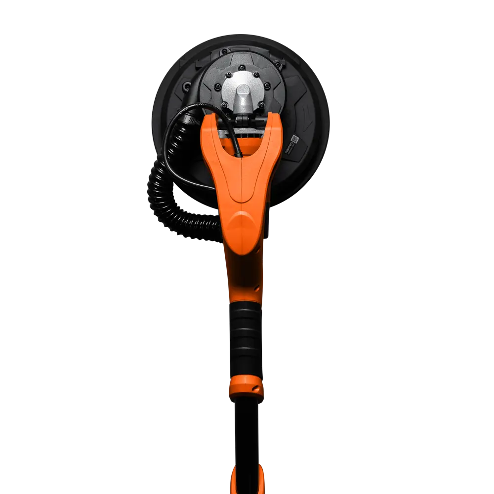 Работоспособная вещь! Шлифует быстро - сравните по времени с ручной работой. Не нужно за собой таскать "леса". Удобная ручка хорошо ложится в руку, ее длина позволяет работать даже с потолками. Вибрации при работе нет. Выхлоп отработанного материала идет через ручку. В помещении надевается фильтровальный мешок, он довольно емкий, на среднюю комнату хватит. А вообще прикрепляется туда же шланг строительного пылесоса.