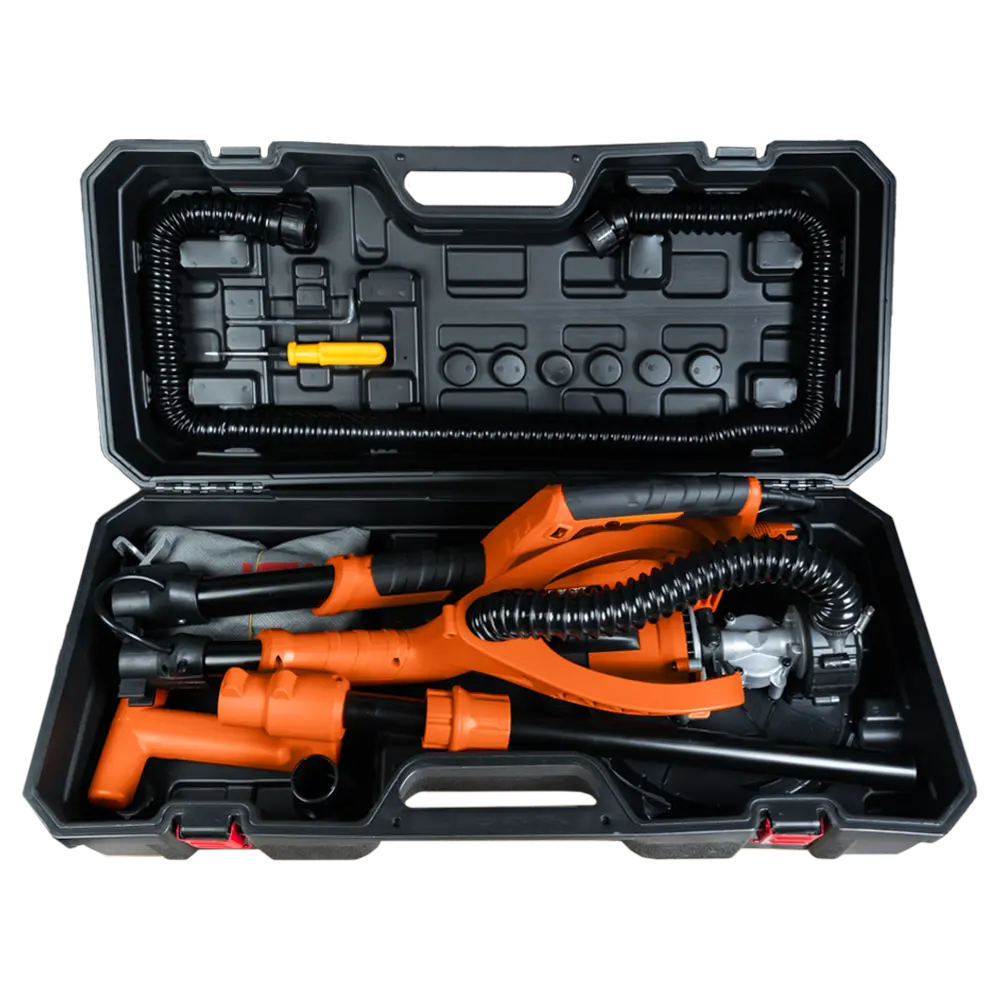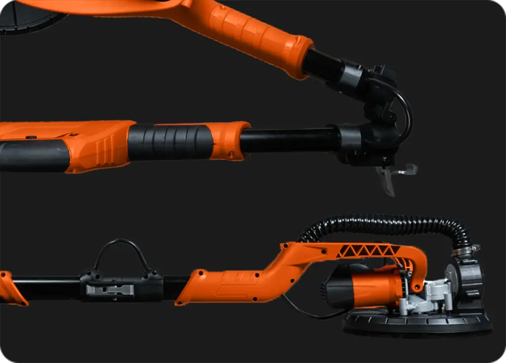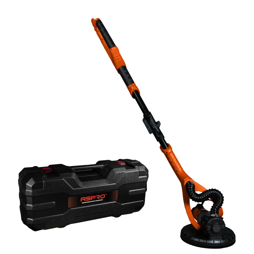 Электрическая шлифовальная машина типа “жираф”, которая доступна в двух конфигурациях (с подсветкой и без) и предназначена для шлифовки различных поверхностей. Используется в ремонтно-отделочные работах внутри помещений. Особенности конструкции включают сменный шлифовальный диск диаметром до 225 мм и двигатель мощностью 750 Вт. Скорость вращения диска от 1000 до 1850 об/мин. Подвижная шлифовальная головка устанавливается на телескопическую ручку длиной от 110 до 180 см, что подходит для работы в помещениях с высотой потолков до 3 метров.